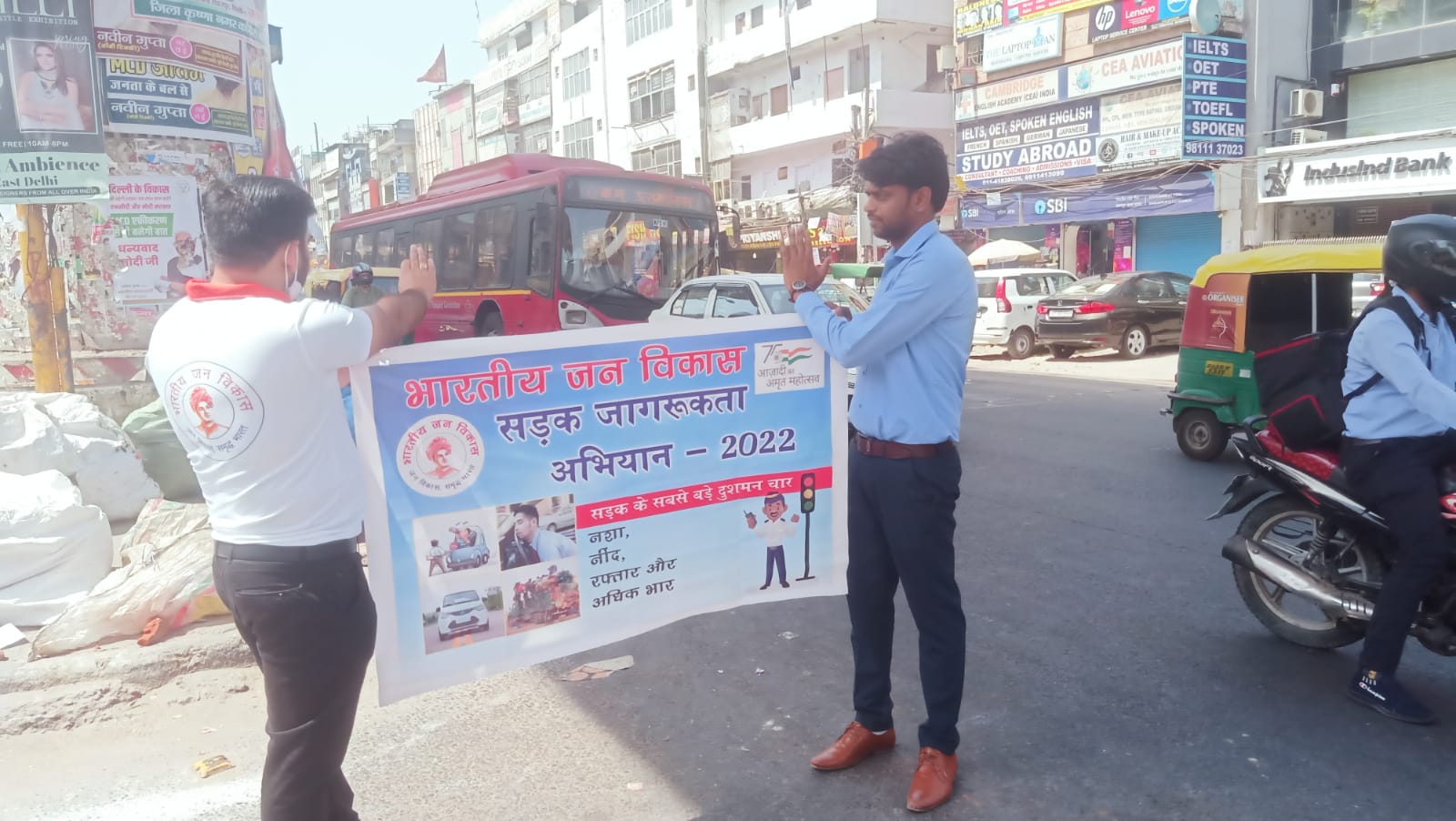 People at various red lights of East Delhi, members of the organization and volunteers made people aware about the cause and prevention of road accidents.